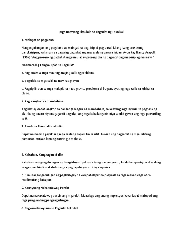 Mga Uri ng Pagsulat. Kasama rin dito ang pag sulat sa mga magasin o mga blog. TEKNIKAL NA PAGSULAT Mga Batayang Simulain Sa Pagsulat Ng Ulat At Teknik Sa Paglalahad 4 Kaisahan kaugnayan at diin 1Paglilikom ng mga datos 2 Pagsusuri at Ebalwasyon ng Datos A.