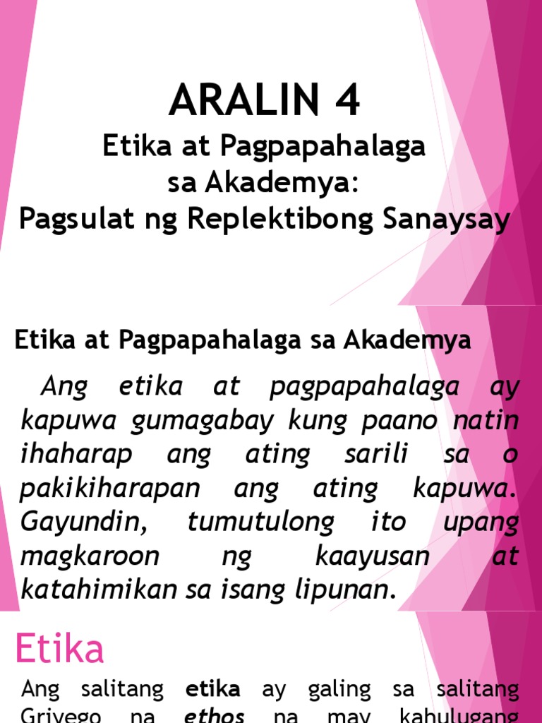 Akademikong Sulatin Ang Akademikong sulatin ay isang intelektwal na pagsulat. Nakikilala ang ibat ibang akademikong sulatin ayon sa. Ang etika ay tumutugon sa mahalagang tanong ng moralidad konsepto ng tama at mali mabuti at masama pagpapahalaga at pagbabalewala pagtanggap at di-pagtanggap ng lipunan na siyang.