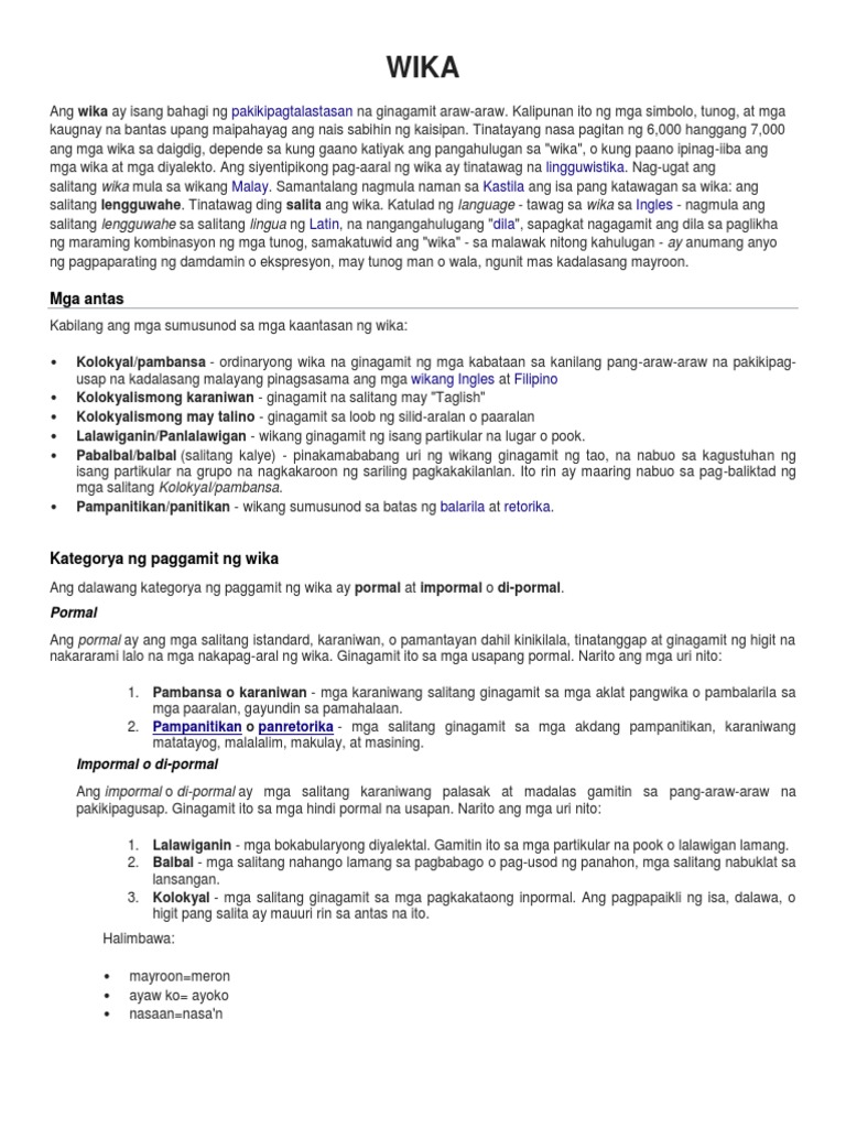 37 Full PDFs related to this paper. Full PDF Package Download Full PDF Package. Wikang ginagamit sa buong bansa Wikang Pampanitikan karaniwang ginagamit sa akdang pampanitikan.