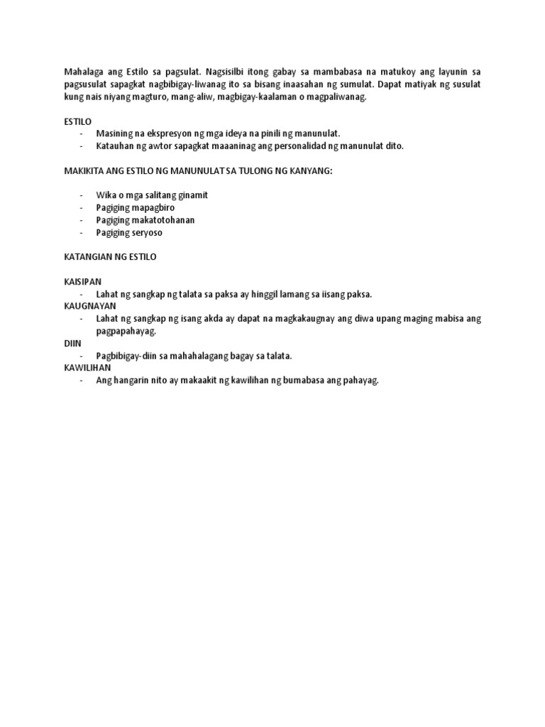Mahalaga Ang Estilo Sa Pagsulat Pdf