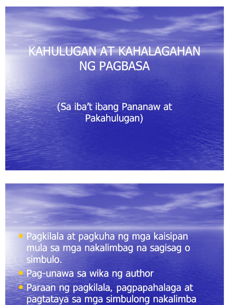 Kahulugan At Kahalagahan Ng Pagbasa Pdf